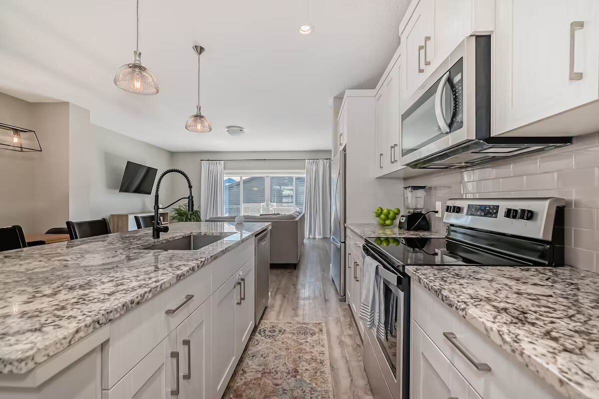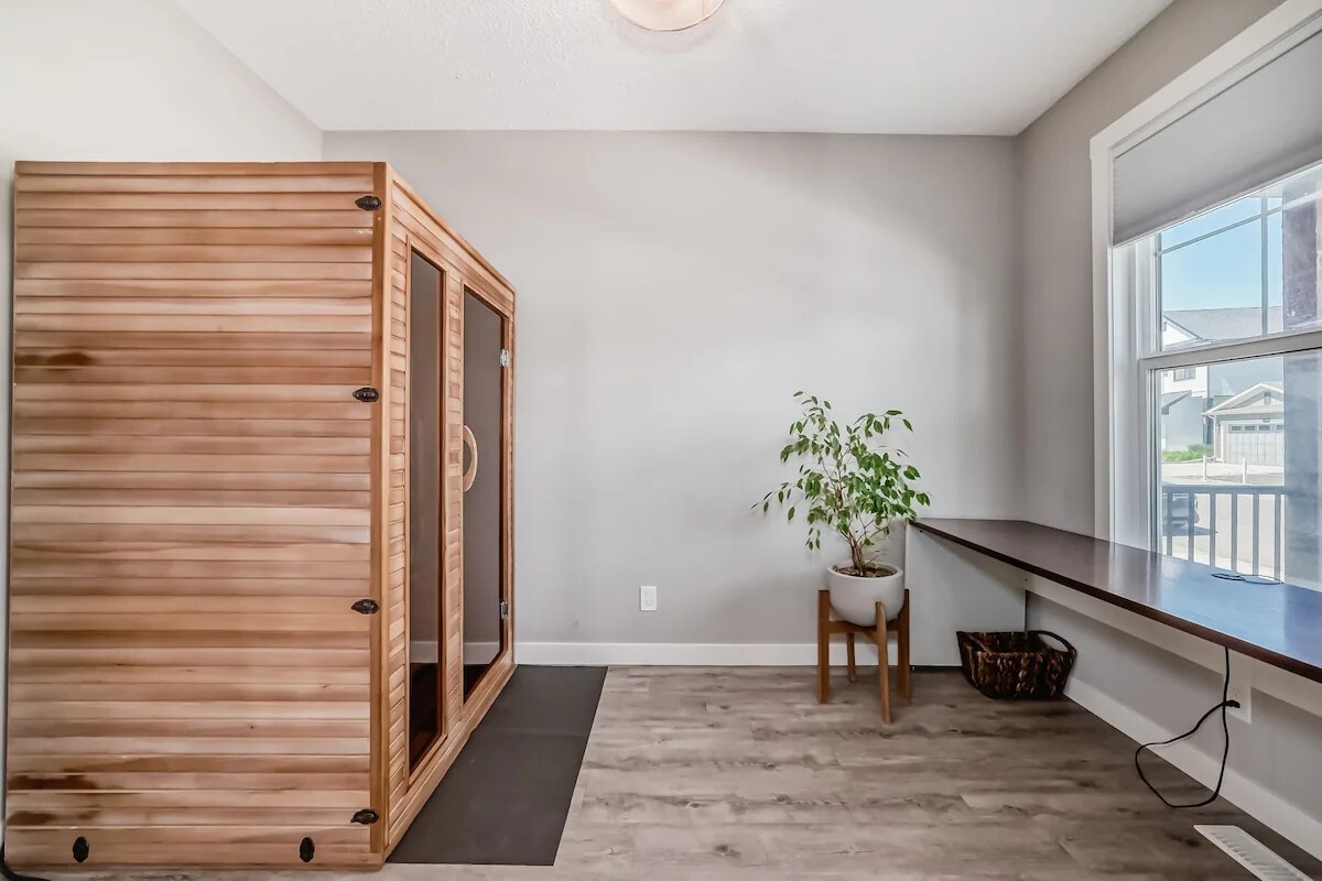 Easy access to downtown Calgary or to venture to Banff for hiking and skiing.