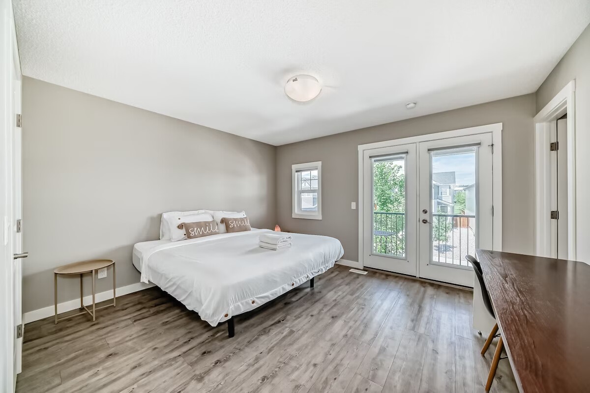 Primary Bedroom - includes a balcony, KING size bed, + oversized ensuite bath
