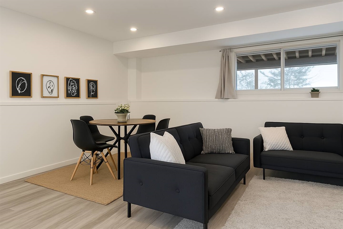 This clean, bright newly built unit is on the lower level of a bi-level. The concept is open with carefully curated decor designed to help you relax during your stay.