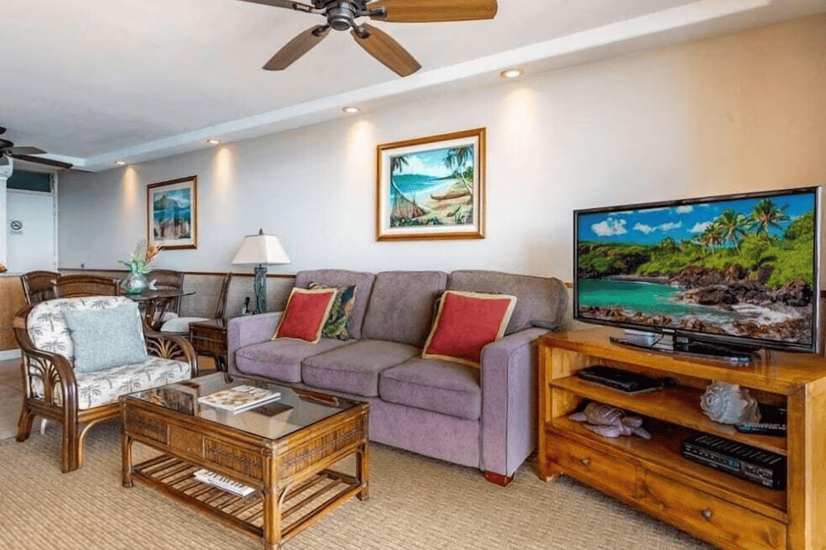 Mana Kai 807 is an "Ali'i Level" 2 BR, 2 BA Ocean Front unit, with 2 Kings and a queen sized sofa bed. Because of it's location right on the beach, the Mana Kai stays nice and cool year round, but in case you prefer AC, Mana Kai 807 is equipped with central air conditioning.