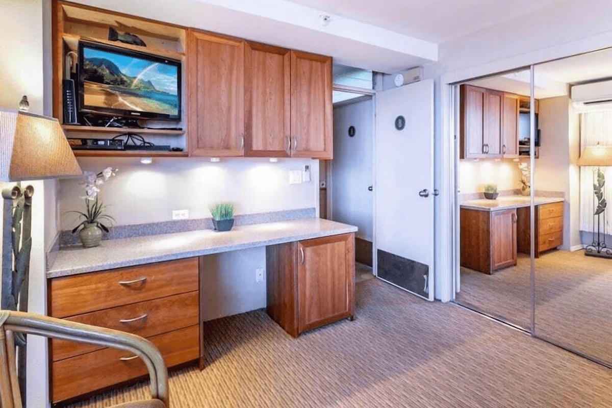 The Mana Kai Resort has many conveniences such as a deli and general store on the ground floor as well as a beach equipment rental shop which has snorkeling equipment, paddle boards, bikes, etc... The excellent Five Palms restaurant is also on the ground floor, and it's happy hour has become very well known for it's great selection and low prices. The Mana Kai also features a beautiful oceanfront swimming pool and a BBQ area which is available for guest use.