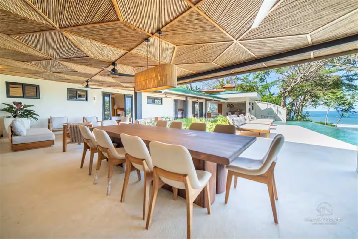 field="nightlyRateMax" format="$%01.0f"] per nightWelcome to Casa Salymar, a coastal sanctuary nestled in the heart of Playa Pelada, Nosara. Just a 12-minute drive from the vibrant Guiones Beach or 12 minute walk to beautiful Playa Pelada, this expansive home offers the perfect blend of luxury and tranquility with accommodations for up to 10 guests. It’s ideal for a group of friends or a family vacation.